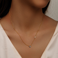 Fashion Ins Minimalist S925 Sterling Silver Zircon Devil Eyes Cross Chain Clavicle Necklace Gifts for Women
